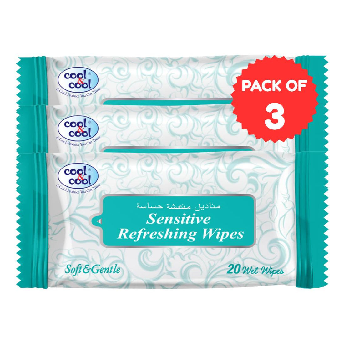 Travelling Wipes Sensitive 20 Sheets Pack of 3