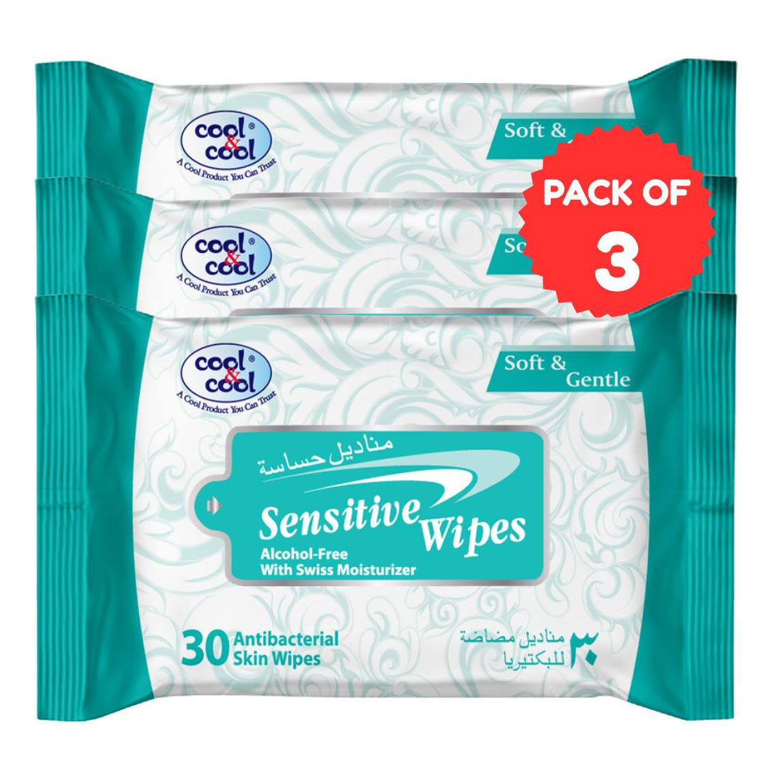 Travelling Wipes Sensitive 30 Sheets Pack of 3